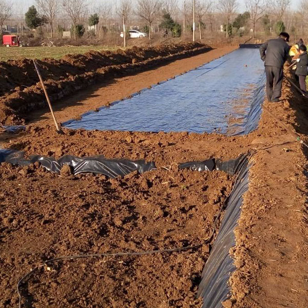 藕池地基開挖,基面平整夯實,剔除雜物后鋪防滲膜,邊鋪邊回填土(約20cm左右),邊坡頂部挖溝錨固,推薦使用厚度0.5mm,采用城建標(biāo)準(zhǔn),詳細指標(biāo)見下表。技術(shù)指標(biāo):